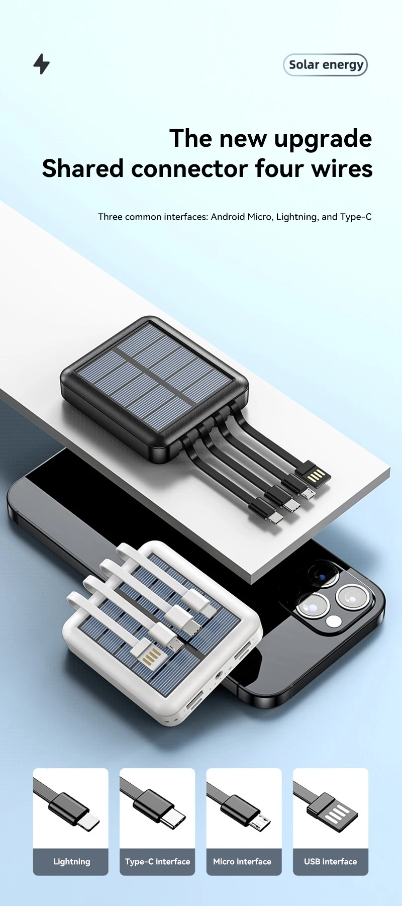4-in-1 Power Bank Solar 30000mAh Large Capacity Charging Mini Powerbank Comes With Four Wires Suitable For Samsung iPhone Xiaomi